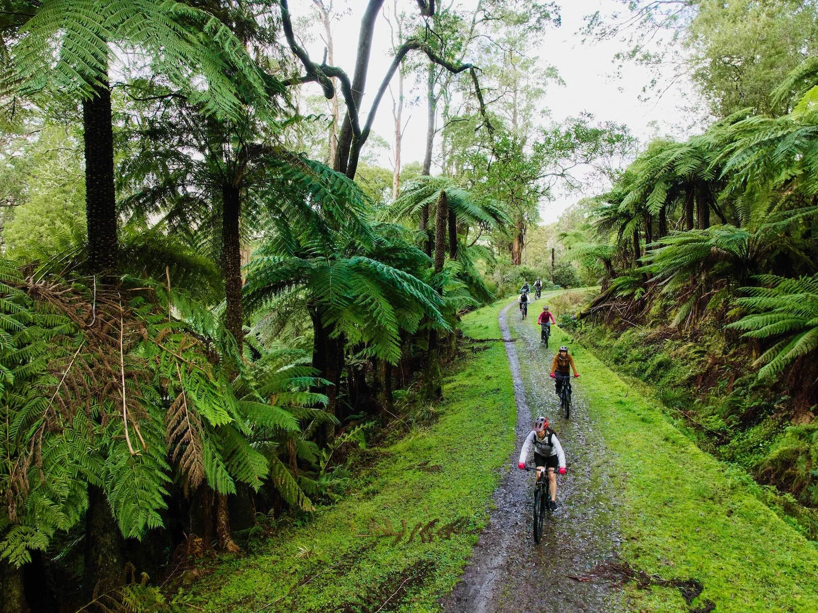 Ride the historic O’Shannassy Aqueduct Trail to the Warburton Redwood Forest. This 12km scenic mountain bike adventure winds through towering Mountain Ash trees, fern gullies, and creeks, ending among majestic 55m Californian Redwoods — a truly unforgettable experience.