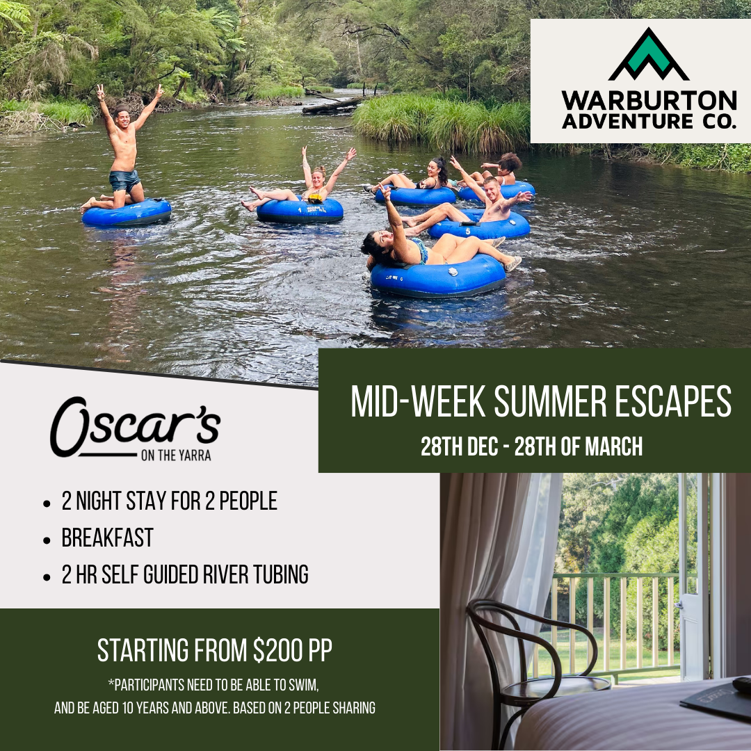 Enjoy a relaxing float down the Yarra River on a comfy blue river tube. This stunning stretch of the river meanders around bends and over gentle rapids. Some sections are nice and cruisy and others may get your heart pumping (just a little).